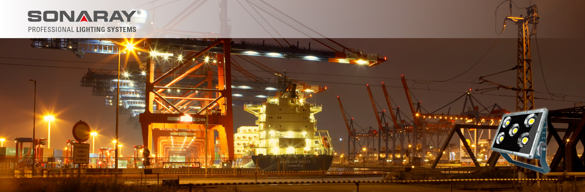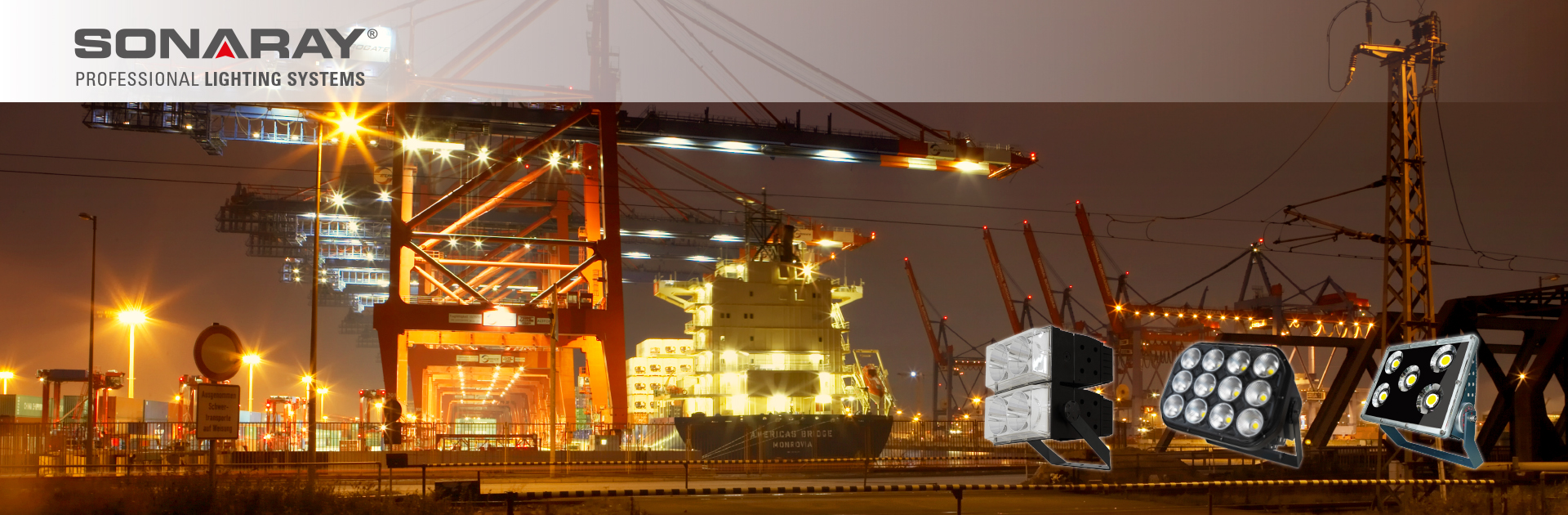 Robuste LED-Fluter für Befestigung an Portalkränen.